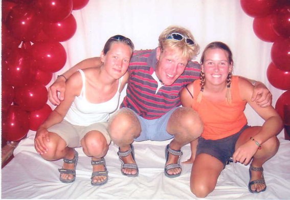 februari (JB) Gisteren hebben we een stel ontmoet die ook in Hotel Mopan verblijven en ze zijn biologen die werken in Cockscombe Wildlife Sanctuary en hij is NL'er en zij is Engelse. Ze zetten overal camera's uit om de populatie Jaguar's in beeld te brengen. Zij gaat straks een onderzoek opzetten over kleine knaagdieren in de jungle en dan bij voorkeur ook nog de soorten die zich door de bomen bewegen. Om ergens te komen moeten zij vele kilometers af leggen en altijd een lange broek aan en lange mouwen vanwege de muskieten en de slangen. Zij zien 's avonds de omgeving vergeven van de sterrelichtjes van spinnen en ze hadden laatst hun eerste Tarantula gezien! Ze moeten zich een weg door het oerwoud kappen en hiervoor worden de Maya's ingeschakeld. In het gebied zijn er enkel of voornamelijk Maya's en dat zijn kleine mensjes die alles zeggen om je een plezier te doen, ook al is dat soms niet handig. Ze zijn fit en sterk en met hun manchettes komen ze bijna overal zonder moeite doorheen. Volgens Bart en Becky (zo heten ze) was er in het gebied een researchcentrum gebouwd door enthousiaste 18 jarige volunteers, ter ere van een onderzoeker die daar al heel lang actief was. Het werd zelfs gesponsored door BAS. Er is in het gebouw nooit iemand onderzoek gaan doen en het zakt bijna in elkaar van ellende, omdat de constructie zo slecht is. De stropers maken er wel gebruik van en hebben hierdoor zelfs nog beter toegang tot het beschermde gebied. Vanavond zouden we naar een feest, maar de entree is $40, dus daar beginnen we maar niet aan. We wilden er samen met Lauren, een andere intern, heengaan, maar Jannes is haar telefoonnummer kwijt, dus we kunnen haar niet eens bellen om ergens anders af te spreken! We hebben net al lopend een fles Casewwijn leeg gedronken (errug lekker) en daarna kwamen we uit bij een nonnenschool 'for all girls' en daar was een groot feest, een fair! Een grote dancetent voor de pubers en ouder en allerlei spelletjes, zoals blik werpen en ringwerpen en dergelijke. Je kon er van alles eten en drinken en er waren ontzettend veel mensen, heel gezellig. Iedereen was opgedofd voor de gelegenheid. Zondag 16