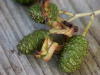 Taphrina alni of Elzenvlag is een fantastische en algemene soort schimmel op Zwarte els (Alnus glutinosa). De gal ontwikkeld zich (in de vrouwelijke katjes) vanuit het vruchtbeginsel en komt tussen de schubben door naar buiten gegroeid met een vlakke en langwerpige wimpel. De omtrekken zijn afgerond en vaak aan het uiteinde meer verbreed dan bij de voet. Vroeg in het seizoen is de vlag fris groen, waarna de kleuren al snel varieren van lichtgroen, geel, roze, rood, paars en oranjeachtige tinten. Later wordt de gal bruin en blijft nog lang (tot het volgende jaar) met de katjes aan de bomen hangen. | | Foto: B. Kabbes